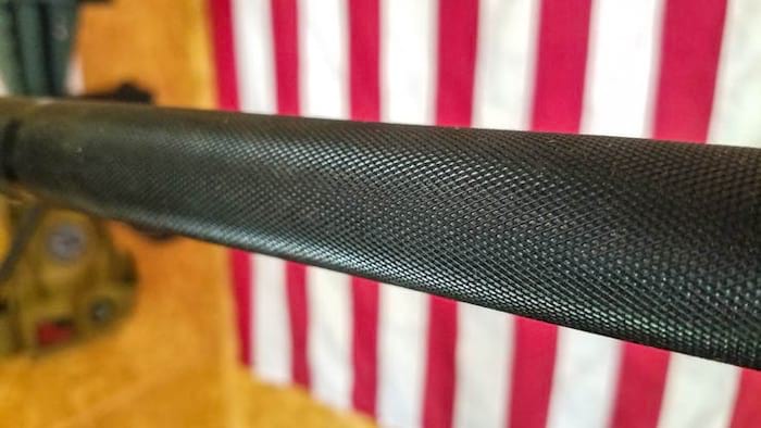 - Knurling and grip: The knurling should be consistent and not overly aggressive. A medium knurl will grip well when chalk is used. A center knurl, although great for powerlifting, is not needed for the majority of people. A score of 4 or higher went to bars with medium knurling that allowed for grip without tearing up your hands.